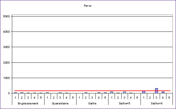 - Parvovirose : Pas de signe de circulation, avec des titres parfaitement compatibles avec la vaccination en place.
