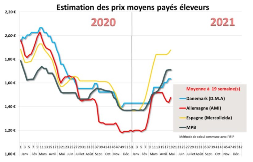 Une situation très incertaine est présente également en Belgique même si récemment les marchés paraissent plus nerveux à l’image des importateurs de l’Europe de l’Est, inquiets de possibles retards de livraison en raison du férié de l’Ascension. Les conditions peinent à être réunies pour susciter des hausses de cours : conditions météo désastreuses, consommation intérieure en berne … La hausse allemande tire cependant la cotation belge vers le haut qui reprend 6 cents du kilo vif.