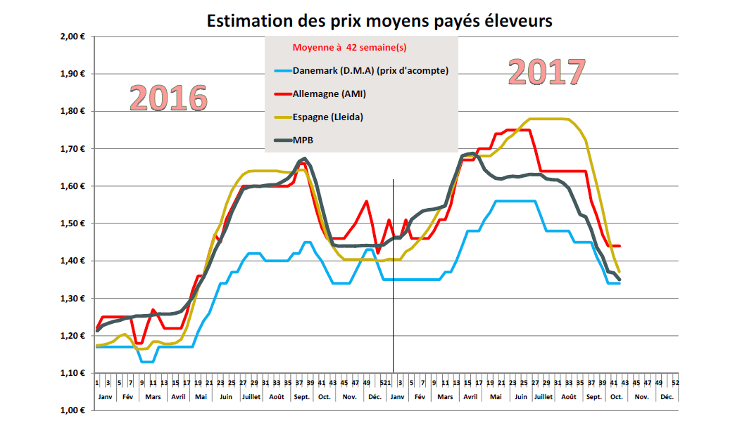 Belgique, Pays‐Bas, Autriche ont suivi la répétition allemande ; seul, le prix d’acompte danois se replie de 2 centimes dans un contexte de marché à l’export très concurrencé.