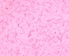 Fig. 1 Coloration de Gram d'Haemophilus parasuis. On observe des bacilles gram negatifs courts et d'autres plus grands (pléomorphisme).