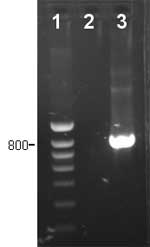 1: marqueur de poids moléculaire 2: échantillon négatif ; pas de détection d'H. parasuis. 3: échantillon positif, lésion produite par H. parasuis. |