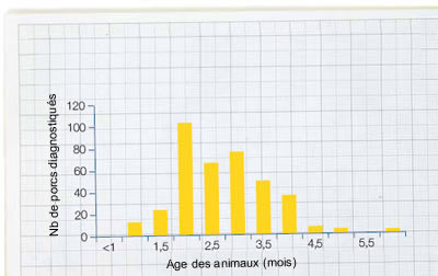 Distribution par âge de 362 porcs pour lesquels le laboratoire d’analyse a confirmé le diagnostic de MAP.