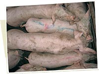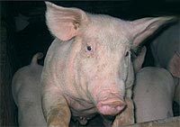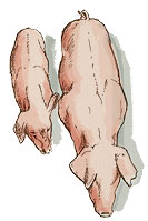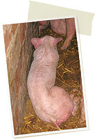 Porcs de 2 (à gauche) et 3 mois (à droite) atteints de MAP. Notez l'épine dorsale marquée, signe de retard de croissance.