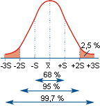 Critères statistiques : l'augmentation ou la baisse significative d'une variante qui suit une distribution normale est établie sur la base de la moyenne plus le double de l’écart-type (S), de façon à ce que 95 % des observations possibles soient prises en compte (95 % de confiance).