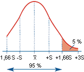 Dans le contexte d'une maladie qui peut seulement entraîner une augmentation de la mortalité ou d'animaux malades, la moyenne plus l'écart-type (S) multiplié par 1,66 inclut 95 % des observations. Les 5 % restants sont exclusivement réparties à droite de la courbe.