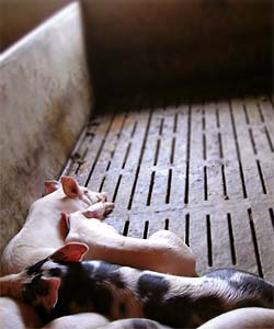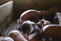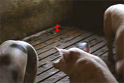 Le reste du bâtiment est examiné avec attention et aucune autre case ne semble touchée. Comme pour le moment il n'y a pas de pertes, des échantillons de fèces de 4 porcs très atteints sont prélevées pour les envoyer au laboratoire afin de confirmer nos suspicions.