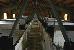 Les séparations des cases du bâtiment se montrent très inefficaces dans le cas d'une maladie transmise par les fèces : elles n'atteignent pas le sol, laissant un espace de communication entre les cases.