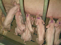 - que l'éleveur a l'habitude de bloquer systématiquement les porcelets pendant le part (il estime que les truies sont ainsi plus calmes).