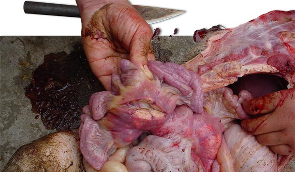 Figure 1 : A l'autopsie des porcs atteints, on observe une augmentation de la taille de certains ganglions lymphatiques comme les inguinaux et les mésentériques