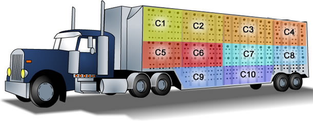 Pendant une période de huit semaines (quatre semaines en été et quatre en hiver), trois camions ont été chargés avec des porcs de 121 kg direction l’abattoir. Avant de partir, 16 porcs par camion ont été pesés et identifiés. Les animaux ont été soumis à un jeûne durant les 8-9 heures avant le voyage. Chacun des trois camions ont été chargés à intervalles de six heures de sorte que, au bout de 6, 12 ou 18 heures de voyage, ils arrivent en même temps à l'abattoir. L’abattoir était à 300 km de l'exploitation et le transport a été fait par des routes plus ou moins longues pour obtenir des durées différentes. Les porcs ont voyagé à une densité de 0,38 m2/porc (en vertu du droit canadien). La température moyenne au cours des voyages d'hiver était -13,4 ° C et 25,9 ° C en été. Les 16 porcs identifiés à la sortie ont été distribués dans les quatre compartiments du camion étudiés (C1, C4, C5 et C10). Le temps d'attente à l'abattoir était de 1,5 h, au cours de laquelle ils ont eu accès à de l'eau.