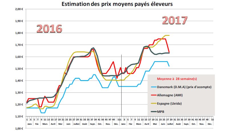 La très forte pression exercée sur le marché de la viande s’est à nouveau traduite mercredi dernier par une baisse de 6 cents du prix allemand AMI, totalisant ‐11 cents en 2 semaines. Le marché d’ISN a, quant à lui, enregistré une baisse de 15 cents en l’espace de 15 jours et des « prix maison » de l’ordre de 11 cents sont annoncés dans certains abattoirs allemands, ce qui augure d’une possible baisse du prix encore cette semaine. Le cours allemand s’effondre sous l’effet conjugué d’une demande intérieure et extérieure particulièrement faible. Progressivement, les länder entrent en période de vacances scolaires, réduisant sensiblement la demande ; sur le plan extérieur, les volumes exportés se réduisent sous l’effet d’une concurrence exacerbée et la pression tarifaire se fait sentir notamment de la part des clients chinois. Comme la semaine passée, cette baisse des cours s’est propagée dans de nombreux pays du nord de l’Europe et ce, malgré des offres particulièrement faibles. C’est le cas en Belgique où il est fait état de disponibilité réduite, de poids en baisse constante. Malgré tout, ici aussi, le marché de la viande est confronté à une forte concurrence en Europe et au grand export. Malgré le peu d’offres, le cours belge s’aligne sur la baisse allemande en se repliant de 5 cents ; de la même manière, le cours autrichien perd 3 cents.