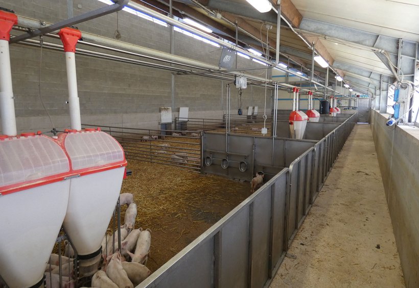 Pendant le PS, les porcs ont été logés dans des cases à sol plein et litière de paille, tandis que pendant l'engraissement, ils ont été logés dans des cases à sol plein et zone de défécation extérieure à caillebotis.