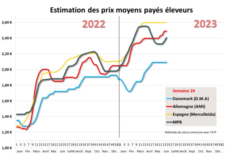 Une fois de plus, la progression de la référence officielle en Allemagne a été stoppée après les 5 centimes enregistrés la semaine précédente. Malgré la grande faiblesse des offres et les attentes justifiées des éleveurs allemands quant à une nouvelle évolution positive, le cours est resté stable sous la pression des abattoirs arguant, à l’heure où les premiers congés scolaires débutent, d’une demande insuffisante sur un marché de la viande qui peine toujours à revaloriser les tarifs des pièces dans ce contexte inflationniste.