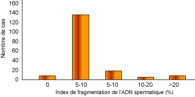tête. En tenant compte des valeurs utilisées comme limites normales (= 70 % de motilité, = 70 % d'acrosomes normaux, <20 % de morphologie anormale), entre 70 et 90% des éjaculats ont été acceptés. Après avoir évalué la fragmentation spermatique, 86,2 % des échantillons ont présenté un IFA = 5 %, 6,4 % ont montré un IFA > 10 % et quelques 3,7 ont eu un IFA > 20 %. Chez les humains on considère qu'il y a des effets négatifs sur la fertilité à partir d'IFA de 15 % en considérant stériles ceux qui dépassent 20 %. Si on prend 20% comme valeur limite de l'IFA, il faudrait écarter 3,7 % d'éjaculats considérés comme “bons".
