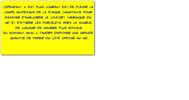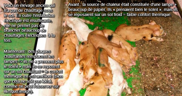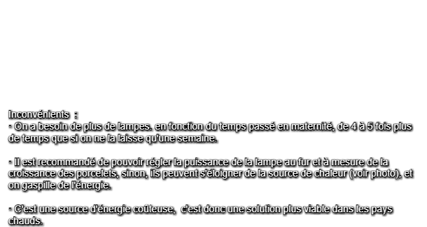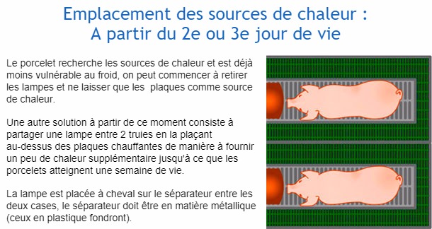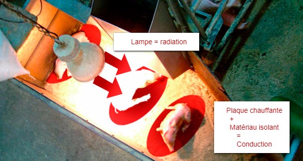 Utilisation des lampes et répartition des zones de chaleur en maternité.