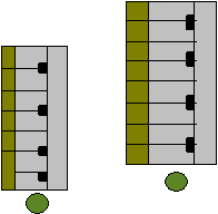 Deux bâtiments, avec nourrisseur et nourrisoupe selon les cases. Environ 12 porcs par case.