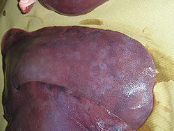 Lors du contrôle abattoir j'ai pu constater l'importance des lésions cicatricielles sur le foie, plusieurs mois après la migration des larves d'Ascaris.
