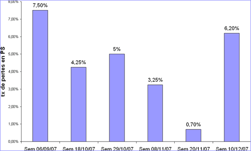 Rappel : depuis l'été 2006, ce taux de pertes sevrage-vente variait selon les bandes entre 8 et 14% de pertes.
