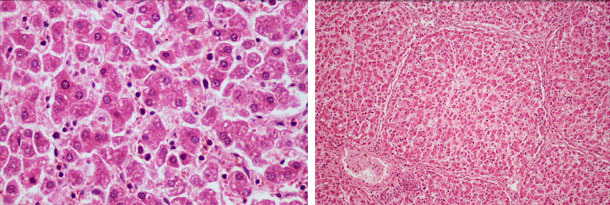 | Dégénérescence hépatique hydropique diffuse | Désorganisation hépatique diffuse |
