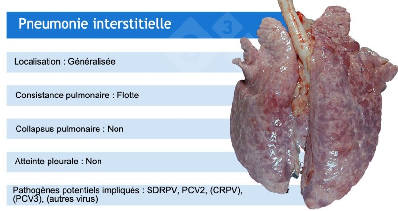 Le CRP, le PCV3 et d'autres virus, tels que les adénovirus, le virus de la maladie d'Aujeszky et d'autres, provoquent souvent des pneumonies interstitielles légères.