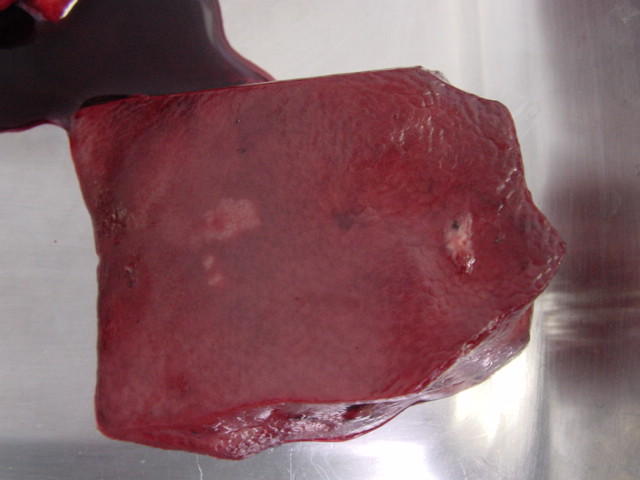 - le sujet 1 présente deux points de nécrose sur le foie d'une taille d'un demi centimètre de diamètre environ.