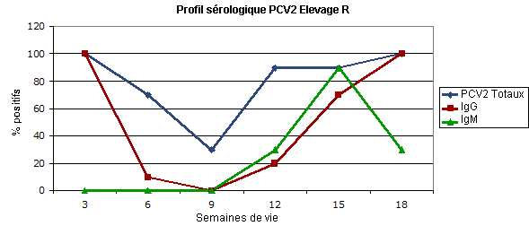 Figure 2.- Profil sérologique transversal dans élevage atteint de circovirose clinique en absence de vaccination..
