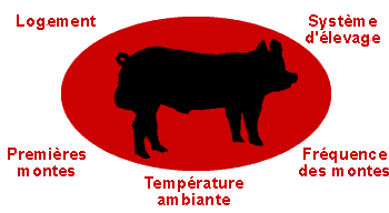 Température ambiante : l'effet sur la libido a beau n'être que transitoire, les verrats font preuve d'une motivation sexuelle moindre lorsque la température ambiante dépasse les 25-30°C. Tout ceci dépend de divers facteurs comme le poids, l'état corporel et la fréquence d'utilisation de l'animal.