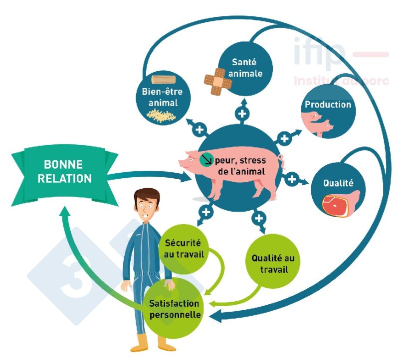 L’éleveur est l’acteur principal du bien-être de ses animaux par ses choix techniques qui déterminent l’environnement social et physique des animaux, par sa surveillance quotidienne, l’identification des situations d’inconfort et sa réactivité pour y remédier, par sa façon d’intervenir auprès des animaux (déplacements, vaccinations …). La qualité de la relation avec ses animaux est essentielle dans son travail.