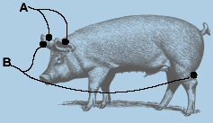 Electrocution : elle induit la mort par insensibilsation cérébrale suivie d'une fibrilation cardiaque provoquant une anoxie cérébrale. On recommande de procéder en deux temps : on doit d'abord étourdir le porc ( les éléctrodes doivent être mises de chaque côté de la tête pour que le courant passe à travers le cerveau) et dans un second temps le courant doit être redirigé vers le cœur du porc inconscient pour induire la fibrilation cardiaque. Pour des porcs en fin d'engraissement, il faut appliquer un minimum de 1,25 ampères a 300 volts pendant 1 seconde. Le plus gros inconvénient de cette méthode est le risque pour les personnes. Il s'agit d'une méthode peu pratique quand il faut l'appliquer à plusieurs animaux car elle demande beaucoup de temps. |