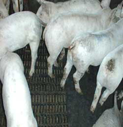 Une activité importante pendant les périodes normales de sommeil et de repos et la présence de "queues sales" sont des signes précurseurs d'un problème d’ambiance. De plus, les mauvaises odeurs et les sols sales sont généralement associés aux courants d'air dans la zone de repos, ce qui fait que les porcs changent continuellement leur zone de repos et de défécation. Cette dernière situation peut aussi être provoquée par la surpopulation et une ambiance trop chaude et, dans ce cas, les porcs se vautrent simplement dans leurs propres excréments et urine pour éliminer l'excès de chaleur de leur corps.
