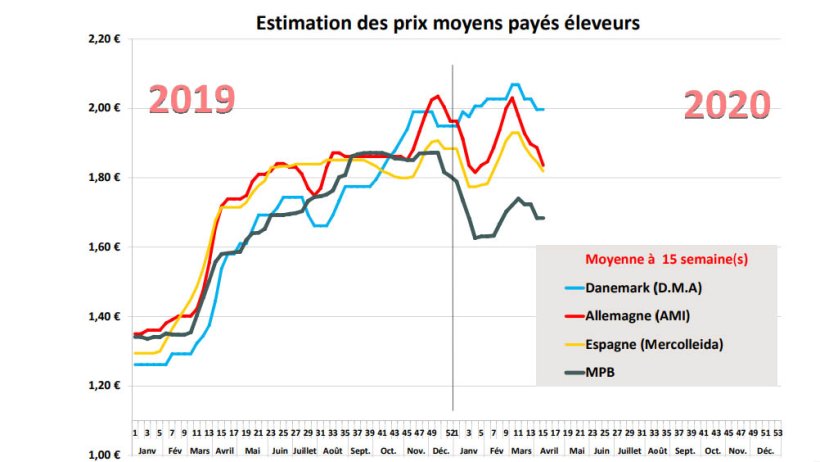 Le cours en Autriche a suivi la tendance allemande (- 5 cents) car la demande intérieure souffre de l’absence de consommation hors foyer et les commandes des supermarchés ont été inférieures aux attentes. L’activité d’abattage traduit la prudence des entreprises d’autant plus que le férié de Pâques rend les offres de porcs bien plus que suffisantes.