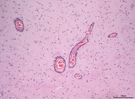 Cerveau: encéphalite non suppurée avec manchons périvasculaires et nodules gliaux