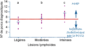 Plus l’intensité des lésions est importante, et plus la quantité de PCV2 présente dans ces lésions est importante.