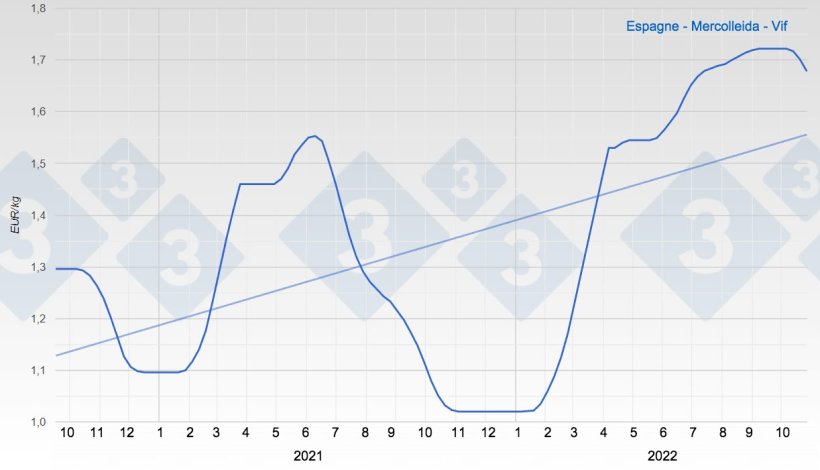 Le prix espagnol a commencé à baisser de son maximum historique. Les baisses sont contenues en raison de la grande capacité d'abattage installée en Espagne et du besoin urgent exprimé par certains grands abattoirs - en particulier les plus grands - d’abattre tous les porcs qu'ils pourront trouver.