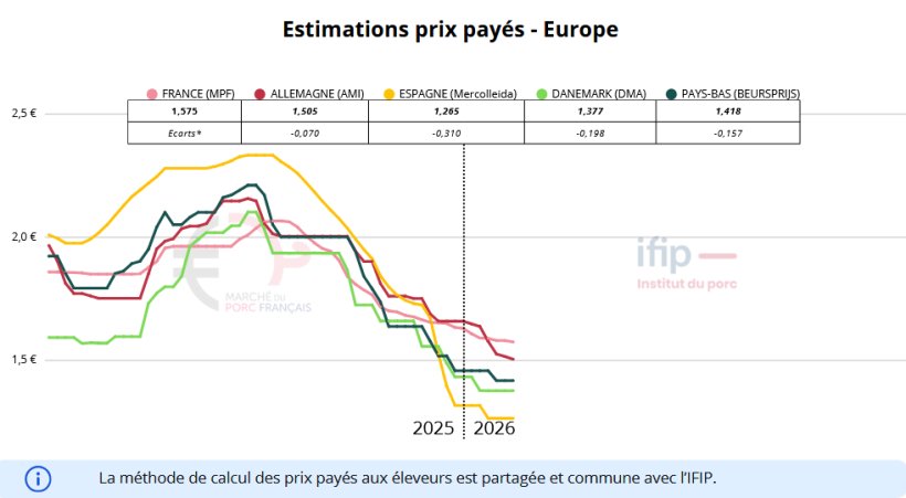 En Allemagne, la réduction des excédents reste en cours, dans un contexte de demande saisonnièrement faible. L’offre est jugée suffisante mais la situation apparaît plus équilibrée qu’auparavant. Cette amélioration se traduit par un léger recul du poids moyen des carcasses. Les tensions européennes pèsent toutefois sur le marché, les volumes espagnols restant davantage orientés vers l’UE. Néanmoins, les producteurs allemands estiment qu’une nouvelle baisse de prix ne stimulerait pas les ventes. Le marché reste donc orienté de manière stable.