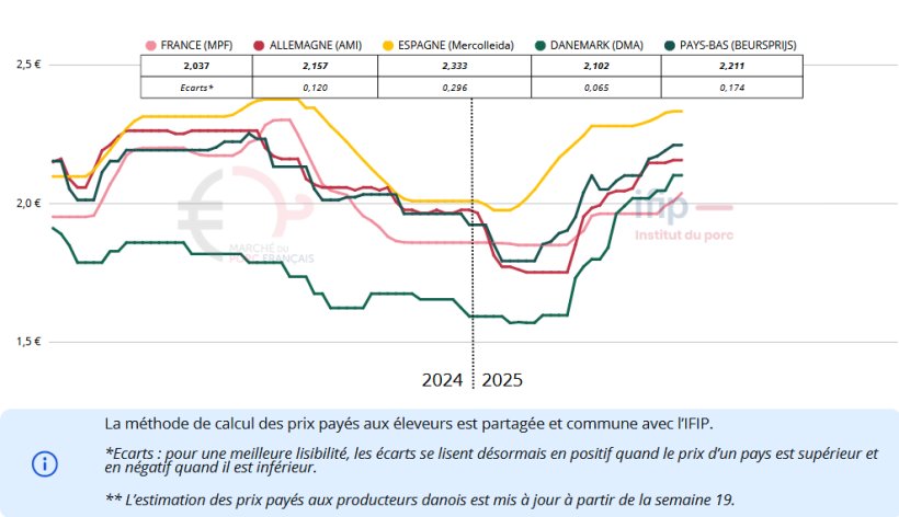 En Allemagne, le marché reste partagé : les abattoirs dénoncent une demande faible, anticipant une baisse des prix et une réduction des volumes, tandis que les engraisseurs estiment que les flux restent maîtrisés. Malgré une hausse de l’offre dans certaines régions, les volumes ont trouvé preneurs.