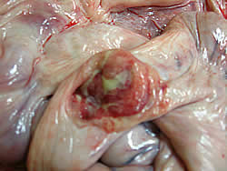 On retrouve sur les analyses bactériologiques faites sur les métrites, l'association E. coli / Staphylocoque hyicus avec un profil d'antibiogramme similaire.