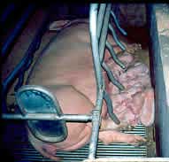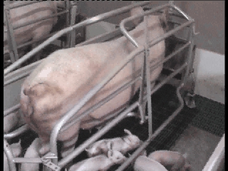 | Les cages de mise-bas ont été conçues dans le but de limiter la mortalité des porcelets, notamment par écrasement. |