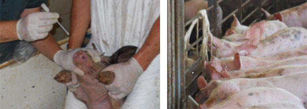 Figure 1. La présence de boîteries après le sevrage est un signe clinique fréquent observé dans les cas de maladie systémique causée par M. hyorhinis.