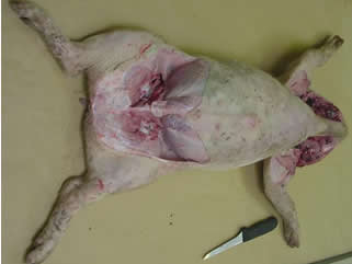 1) 2 porcelets diarrhéiques et amaigris de 15 et 20 kg sont euthanasiés et acheminés au laboratoire d’analyse dans la soirée.