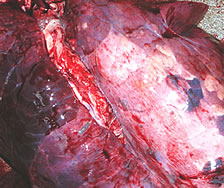 L’éleveur qui a demandé quelque temps auparavant un contrôle pulmonaire à l’abattoir par l’intermédiaire de son groupement, a eu oralement l’information qu’il y avait des lésions de pneumonie « classique », c’est-à-dire sans abcès ou nécrose.