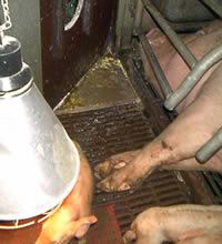 - points zootechniques : rang de portée, état d’embonpoint et antécédents des truies à problèmes ; vérification de la température des maternités ; vérification des quantités d’aliment distribuées ; inspection des silos ; observation des mamelles et du comportement des nouveaux nés