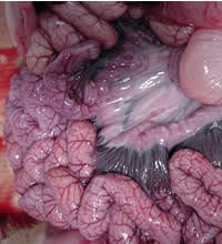 Parallèlement à cet appel, je reçois un résultat d’analyse faite au laboratoire local sur 2 porcelets vivants de 3-4 jours : estomac plein de lait, faible congestion de l’intestin grêle, contenu liquide du caecum-colon ; absence de germes pathogènes spécifiques.