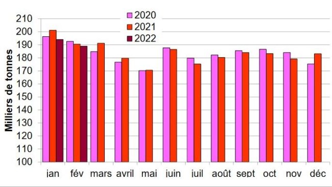 En Allemagne, les abattages ont baissé de -11% comparé à mars 2021, alors que la demande des abatteurs, transformateurs et des restaurateurs est croissante.