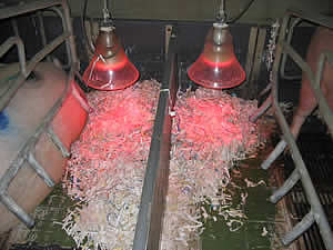 | 1. un bon isolement du sol de la case de mise-bas. 2. une ou plusieurs sources de chaleur focalisées sur les porcelets. |