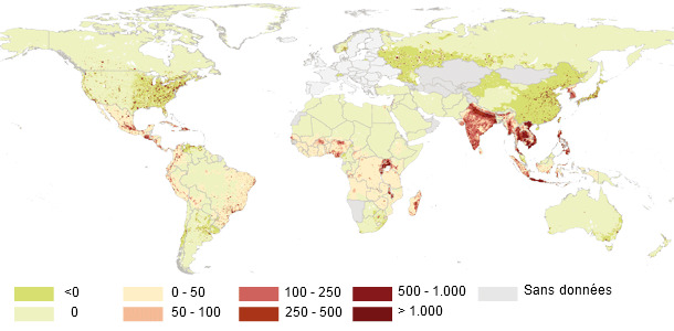 Nous présentons une estimation de la FAO sur l'évolution de la demande de protéine d'origine animale entre 2000 et 2030 dans le monde.