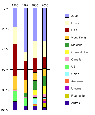 Les données concernant l'évolution des importations et exportations de viande de porc pendant les 20 dernières années montrent que le Japon continue à être le grand importateur suivi par la Russie.