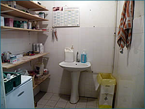 | - Ne pas hésiter à multiplier les pédiluves : la répétition des opérations de trempage aide en effet à maintenir un niveau hygiénique satisfaisant. - Des lavabos propres et bien équipés (eau chaude, eau froide, essuie-mains propres et secs, savon liquide, robinet à pédale) sont des éléments indispensables à la rupture de la chaîne de contamination et, stratégiquement placés, ils participent au respect de la marche en avant par le porcher. |