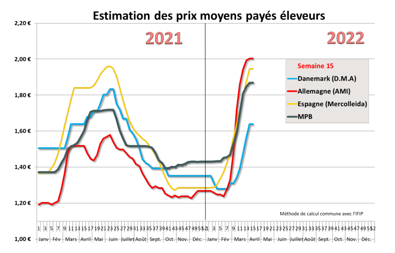 Le prix du porc en Chine est à 12,39 CNY le 13 avril (1,79 euro). Les autorités chinoises continuent d’acheter des volumes de viande afin de stabiliser le cours du porc. La Chine a produit près de 53 millions de tonnes de porc l'année dernière, soit une augmentation de 29 % par rapport à l'année précédente. Les éleveurs de porcs ont subi des pertes importantes sur leurs ventes de porcs depuis début janvier, et les confinements actuels à travers le pays visant à freiner les épidémies de COVID nuisent davantage à la demande.