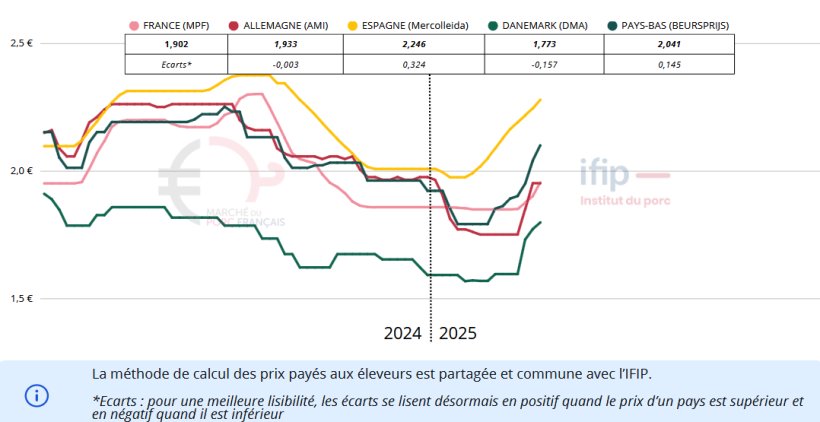 Cette semaine, la tendance est nettement à la hausse sur le Marché du Porc Français. Après une première augmentation de 0,7 centime lundi, le prix a atteint jeudi une progression maximale de 5 centimes. Ainsi, tous les lots du jour ont été commercialisés à 1,793 €. Sur l’ensemble de la semaine, l’offre totale s’est révélée supérieure à celle des semaines précédentes. L’ensemble des lots a néanmoins trouvé preneur, signe d’une dynamique d’abattage bien présente et d’un besoin réel en porcs.